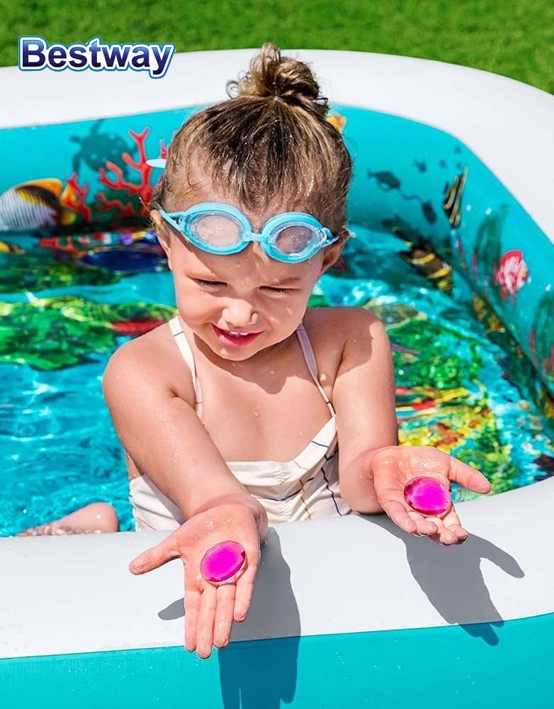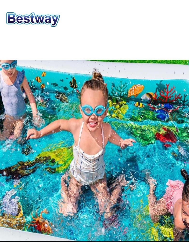- تجربة ثلاثية الأبعاد فريدة: يأتي المسبح مع نظارتين غطس ثلاثي الأبعاد تسمحان للأطفال برؤية رسومات قاع البحر وكأنها تنبض بالحياة.